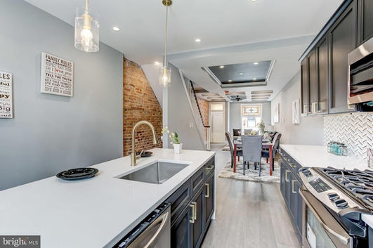This 4 bedroom, 3.5 bathroom rowhome includes a custom kitchen with a fully tiled backsplash and a waterfall island, all refinished trim with trey ceilings and hardwood flooring throughout, and a brand new rooftop deck.